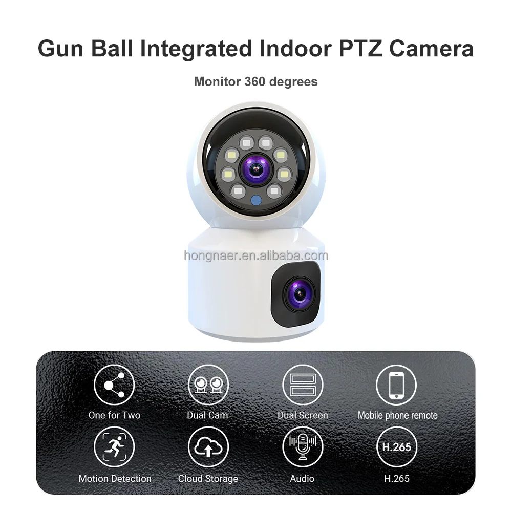 Hongnaer 8MP Indoor Color Infrared Night Vision Wireless Dome PTZ IP Camera V380 Pro Dual Lens 4K WiFi CCTV Home Security Camera