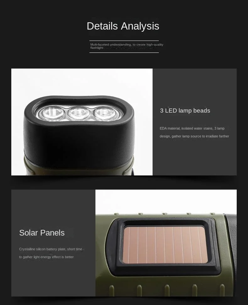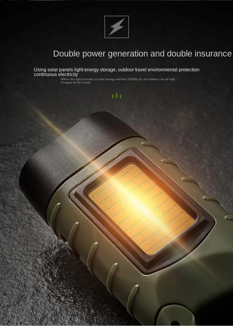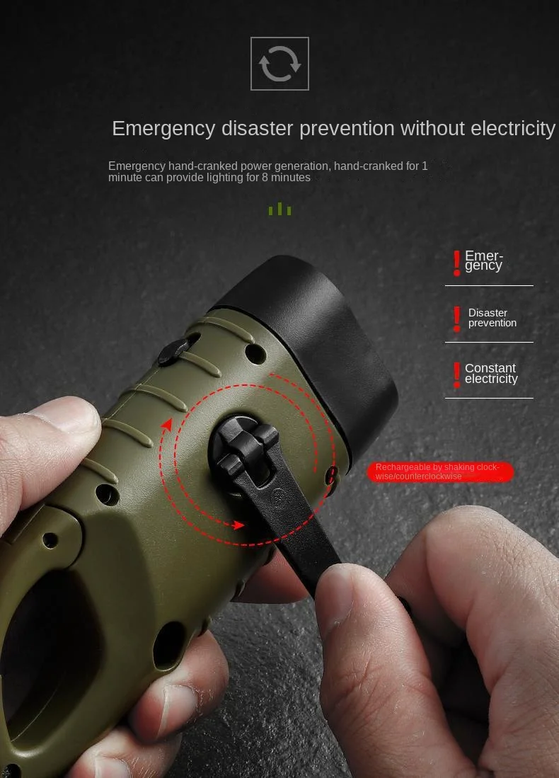 Solar Hand Crank Aluminum Alloy Flashlight with Emergency Light for Outdoor Camping Portable Manual Lighting